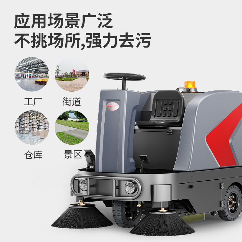 • 適用場景:適用于工廠車間、物流倉庫、大型商超、工業(yè)園區(qū)、市政道路、學(xué)校操場、景區(qū)步道等大面積、高頻次清潔的場景
