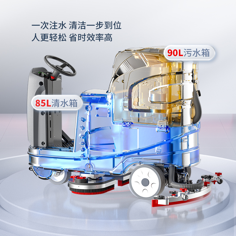 雙刷盤雙向出水,清洗面積大幅提升,清潔效率更快,輕松過(guò)減速帶,爬坡15不用擔(dān)心翻車隱患;車載有故障蜂鳴報(bào)警,工作狀態(tài)一目了然。